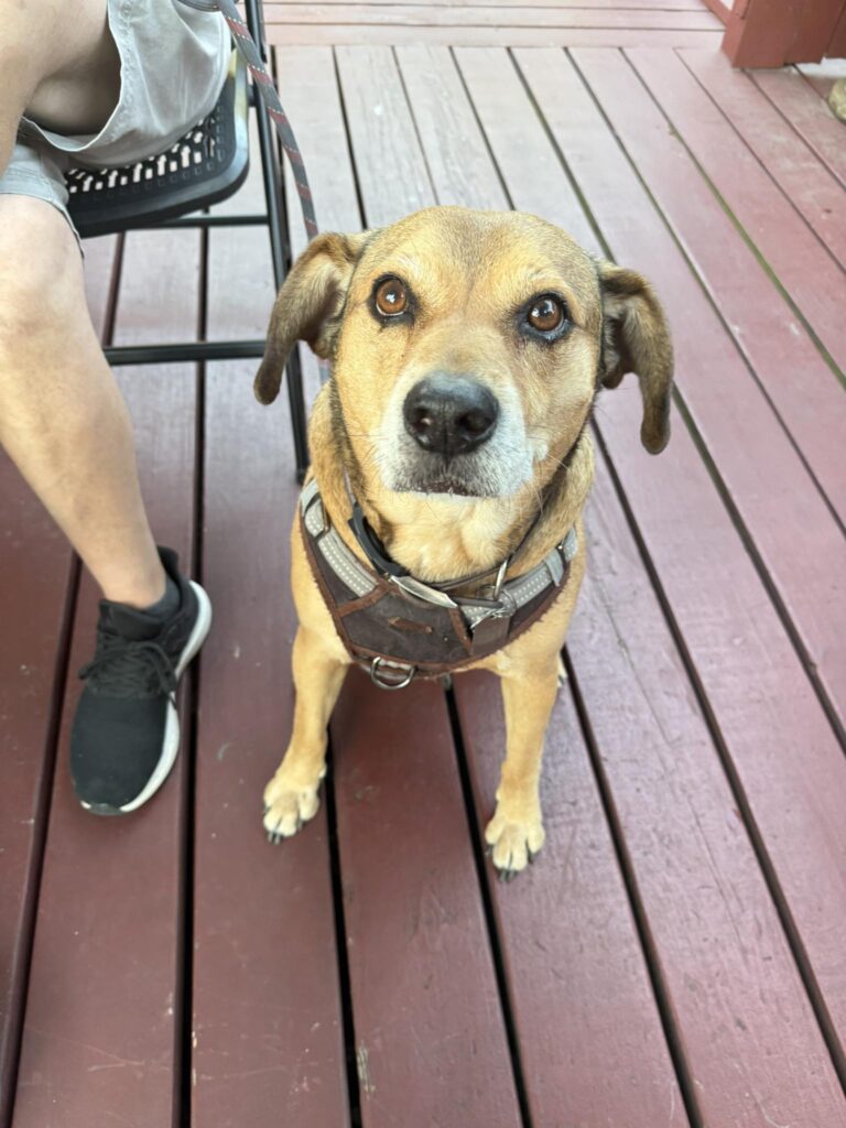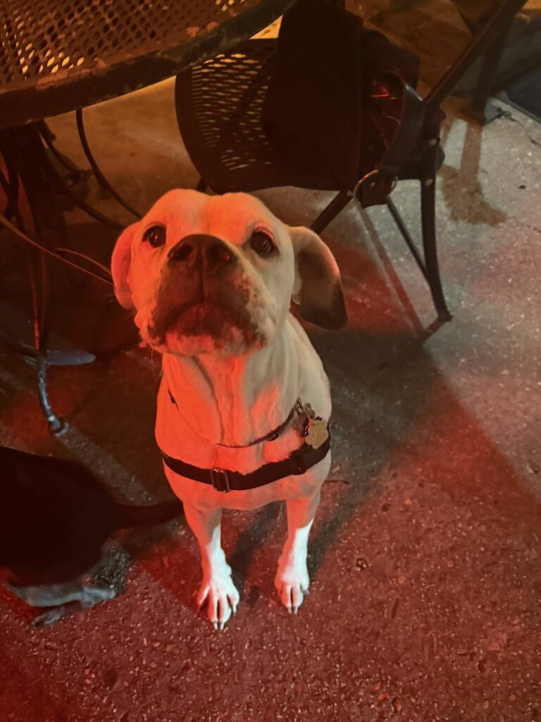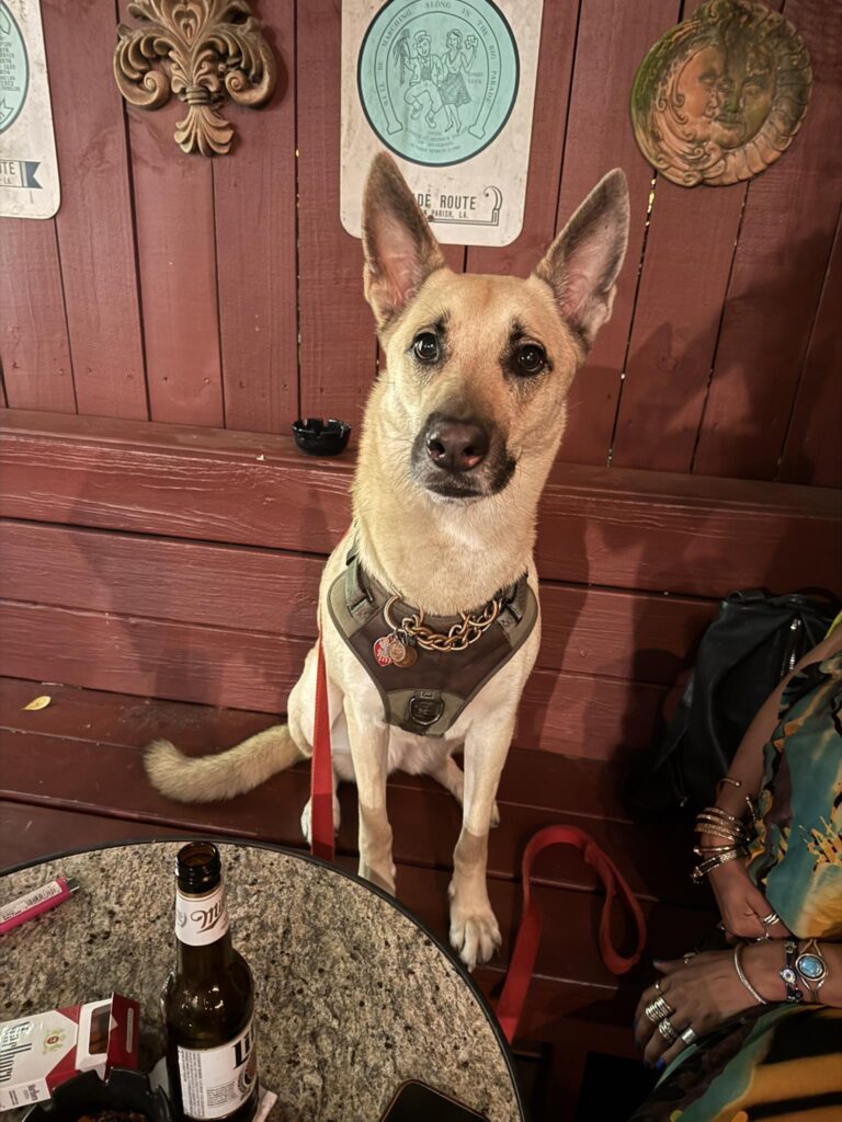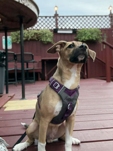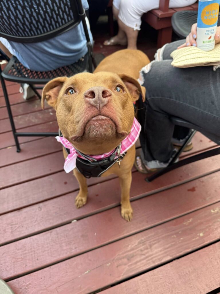 Check out our pub pups on the patio. They are all adoptable through Take Paws Rescue!